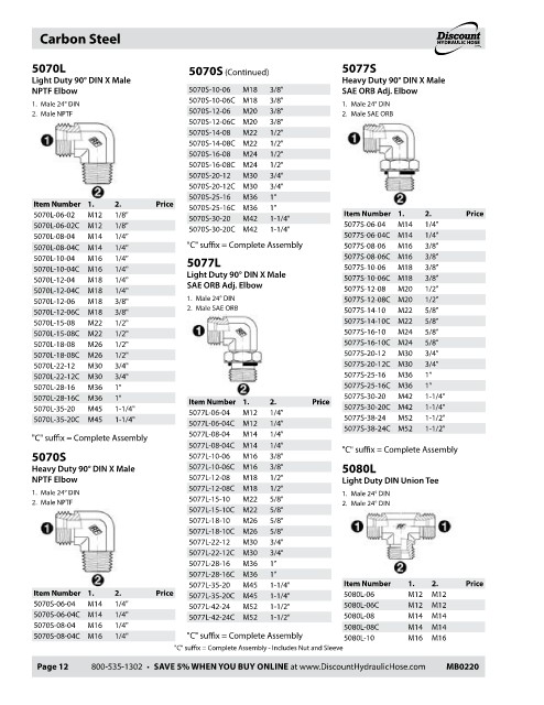 Page 12 800-535-1302 • SAVE 5% WHEN YOU BUY ONLINE at www.DiscountHydraulicHose.com MB0220 MB0220 800-535-1302 • SAVE 5% WHEN YOU BUY ONLINE at www.DiscountHydraulicHose.com Page 13
