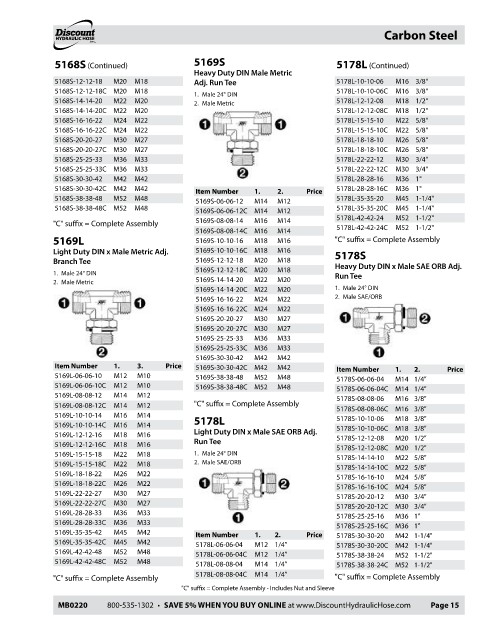 Page 14 800-535-1302 • SAVE 5% WHEN YOU BUY ONLINE at www.DiscountHydraulicHose.com MB0220 MB0220 800-535-1302 • SAVE 5% WHEN YOU BUY ONLINE at www.DiscountHydraulicHose.com Page 15