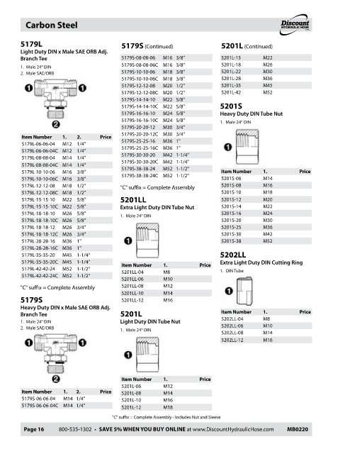 Page 16 800-535-1302 • SAVE 5% WHEN YOU BUY ONLINE at www.DiscountHydraulicHose.com MB0220 MB0220 800-535-1302 • SAVE 5% WHEN YOU BUY ONLINE at www.DiscountHydraulicHose.com Page 17