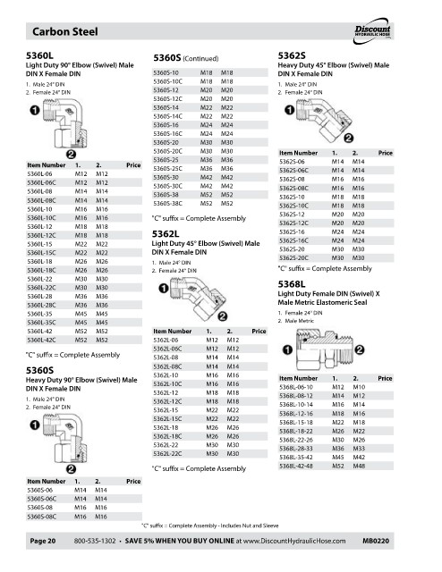 Page 20 800-535-1302 • SAVE 5% WHEN YOU BUY ONLINE at www.DiscountHydraulicHose.com MB0220 MB0220 800-535-1302 • SAVE 5% WHEN YOU BUY ONLINE at www.DiscountHydraulicHose.com Page 21