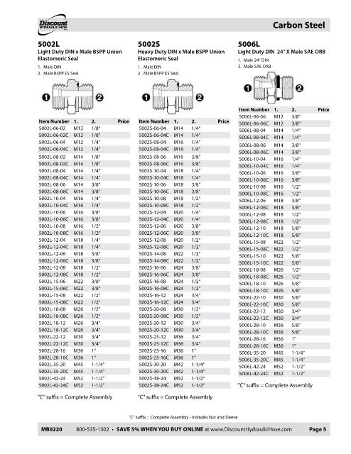 Page 4 800-535-1302 • SAVE 5% WHEN YOU BUY ONLINE at www.DiscountHydraulicHose.com MB0220 MB0220 800-535-1302 • SAVE 5% WHEN YOU BUY ONLINE at www.DiscountHydraulicHose.com Page 5
