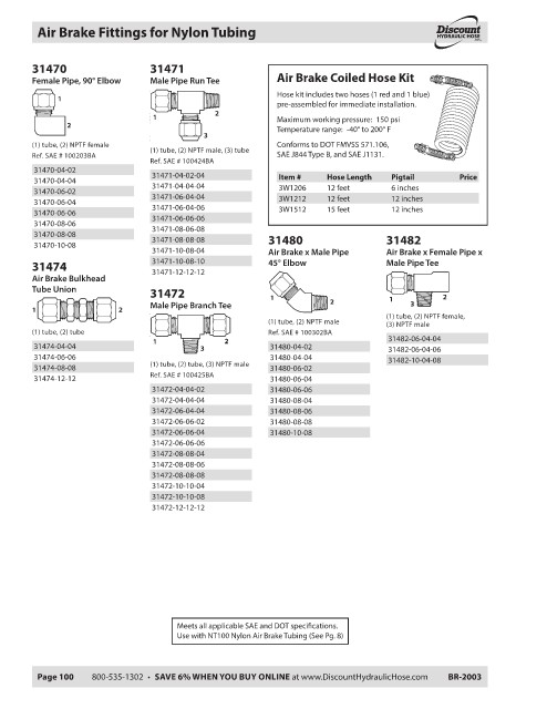 Page 100 800-535-1302 • SAVE 6% WHEN YOU BUY ONLINE at www.DiscountHydraulicHose.com BR-2003