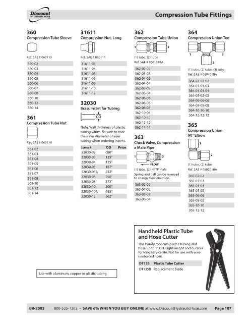 BR-2003 800-535-1302 • SAVE 6% WHEN YOU BUY ONLINE at www.DiscountHydraulicHose.com Page 107