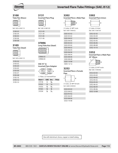 BR-2003 800-535-1302 • SAVE 6% WHEN YOU BUY ONLINE at www.DiscountHydraulicHose.com Page 113