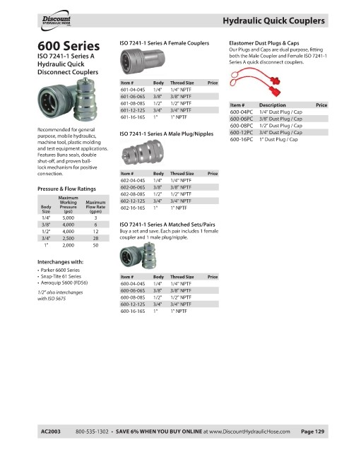 AC2003 800-535-1302 • SAVE 6% WHEN YOU BUY ONLINE at www.DiscountHydraulicHose.com Page 129