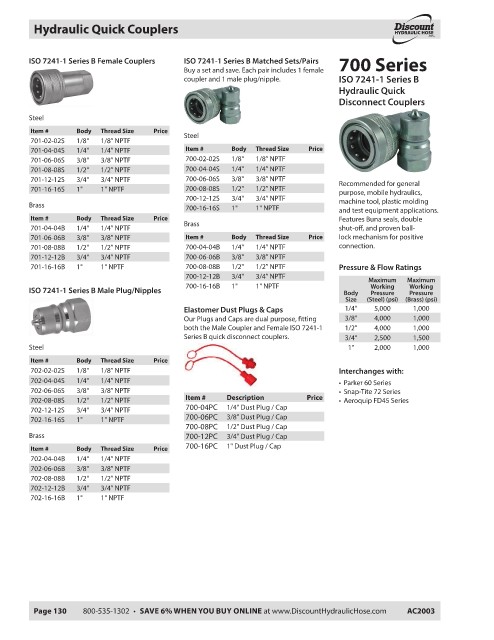 Page 130 800-535-1302 • SAVE 6% WHEN YOU BUY ONLINE at www.DiscountHydraulicHose.com AC2003