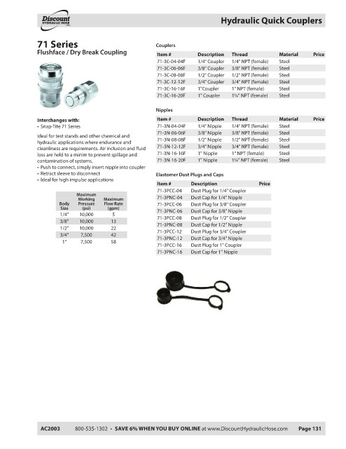 AC2003 800-535-1302 • SAVE 6% WHEN YOU BUY ONLINE at www.DiscountHydraulicHose.com Page 131