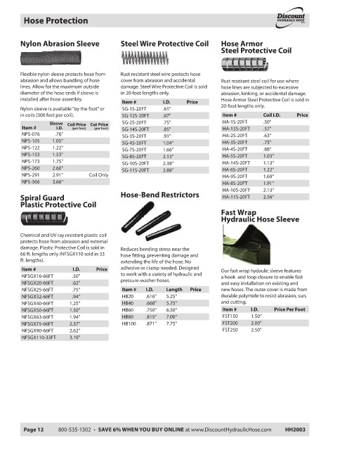 Page 12 800-535-1302 • SAVE 6% WHEN YOU BUY ONLINE at www.DiscountHydraulicHose.com HH2003