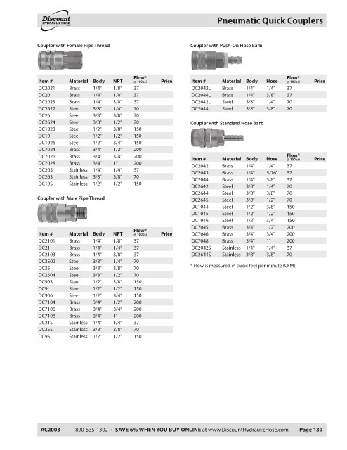 AC2003 800-535-1302 • SAVE 6% WHEN YOU BUY ONLINE at www.DiscountHydraulicHose.com Page 139