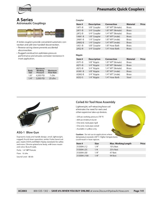 AC2003 800-535-1302 • SAVE 6% WHEN YOU BUY ONLINE at www.DiscountHydraulicHose.com Page 141