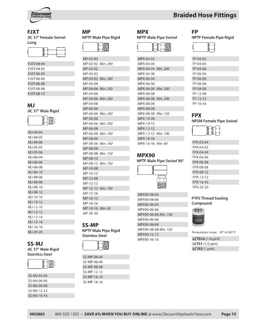 HH2003 800-535-1302 • SAVE 6% WHEN YOU BUY ONLINE at www.DiscountHydraulicHose.com Page 15