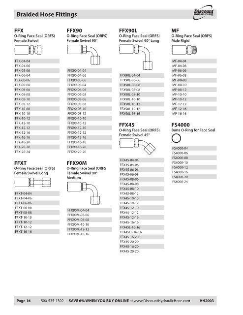 Page 16 800-535-1302 • SAVE 6% WHEN YOU BUY ONLINE at www.DiscountHydraulicHose.com HH2003