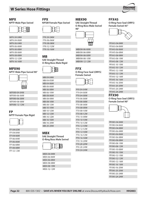 Page 22 800-535-1302 • SAVE 6% WHEN YOU BUY ONLINE at www.DiscountHydraulicHose.com HH2003