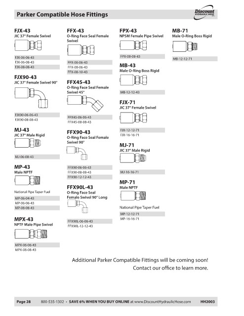 Page 28 800-535-1302 • SAVE 6% WHEN YOU BUY ONLINE at www.DiscountHydraulicHose.com HH2003