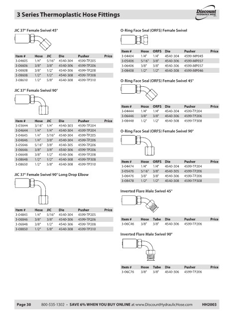 Page 30 800-535-1302 • SAVE 6% WHEN YOU BUY ONLINE at www.DiscountHydraulicHose.com HH2003
