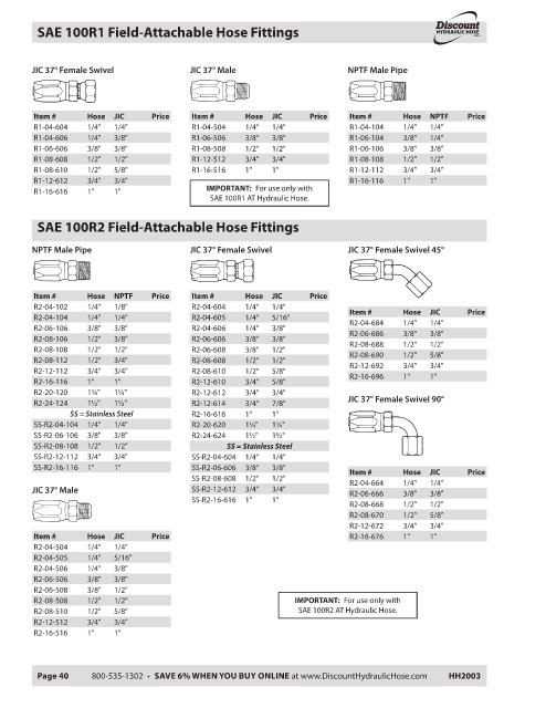 Page 40 800-535-1302 • SAVE 6% WHEN YOU BUY ONLINE at www.DiscountHydraulicHose.com HH2003