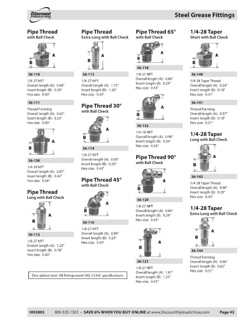 HH2003 800-535-1302 • SAVE 6% WHEN YOU BUY ONLINE at www.DiscountHydraulicHose.com Page 43