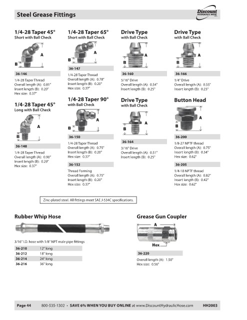 Page 44 800-535-1302 • SAVE 6% WHEN YOU BUY ONLINE at www.DiscountHydraulicHose.com HH2003