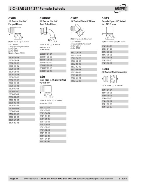 Page 54 800-535-1302 • SAVE 6% WHEN YOU BUY ONLINE at www.DiscountHydraulicHose.com ST2003