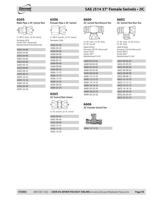 ST2003 800-535-1302 • SAVE 6% WHEN YOU BUY ONLINE at www.DiscountHydraulicHose.com Page 55