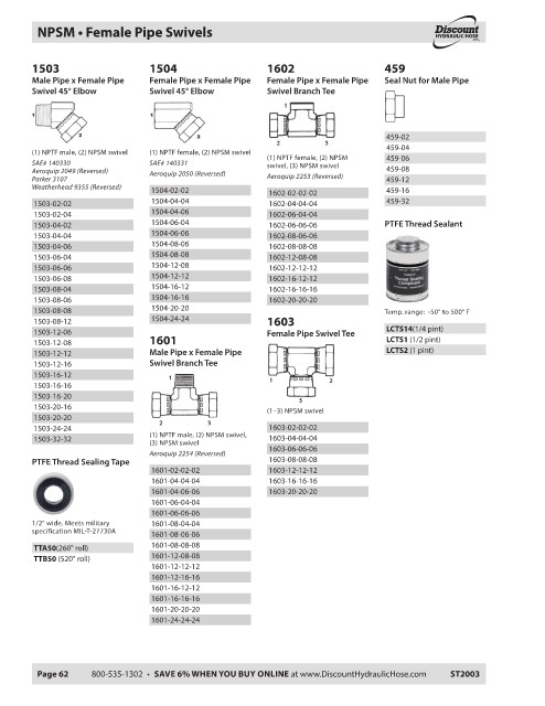 Page 62 800-535-1302 • SAVE 6% WHEN YOU BUY ONLINE at www.DiscountHydraulicHose.com ST2003