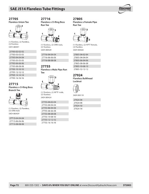 Page 72 800-535-1302 • SAVE 6% WHEN YOU BUY ONLINE at www.DiscountHydraulicHose.com ST2003